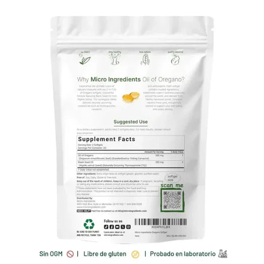 Este complejo avanzado de aceite de orégano, extraído de hojas seleccionadas de Origanum minutiflorum, combinado con aceite de semilla negra (Nigella sativa), ofrece un potente apoyo herbal para fortalecer el sistema inmunológico y promover el bienestar general.